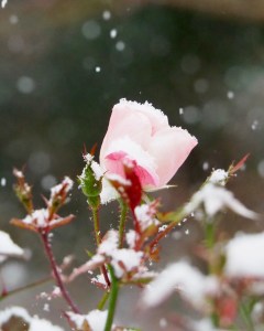 This morning, during an early snow, I looked from my window. One bright pink rose clung to its stem, blessed and beautiful.